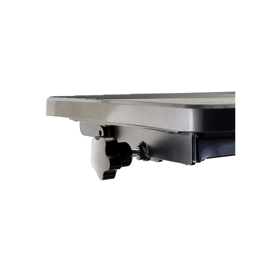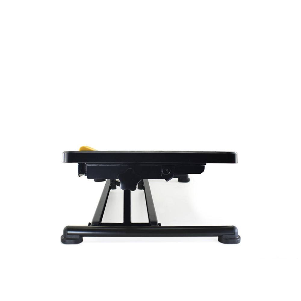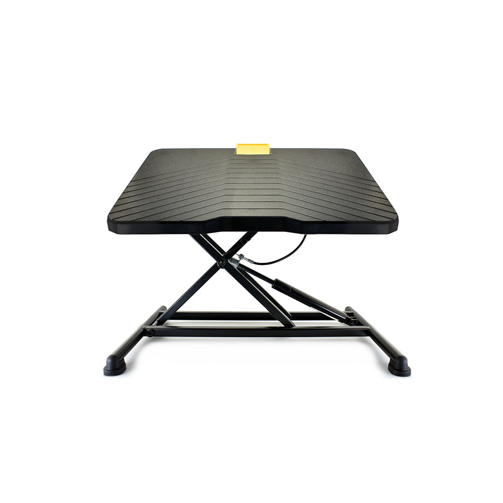 The Ergoapt Pro Footrest features a heavy metal frame and a spacious foot platform. The height of the foot platform can be adjusted via a large button located along the top, providing quick and convenient customisation via a gas lift mechanism. The angle of the foot platform can be locked in place at a desired angle or can be left dynamic, allowing for versatile positioning and movement.