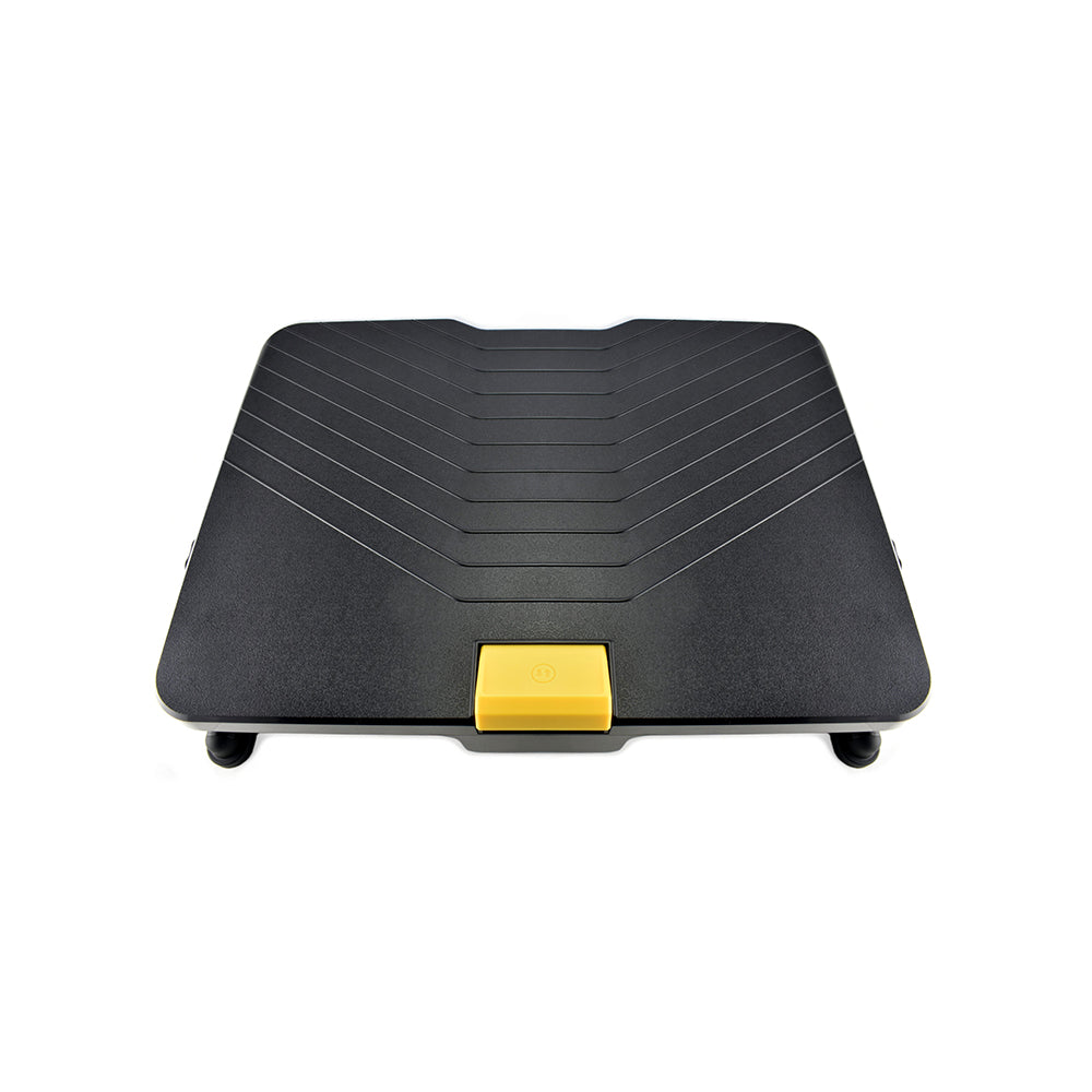 The Ergoapt Pro Footrest features a user-friendly height adjustment mechanism that can be easily operated with a single foot, via a large button located at the rear of the platform. This release button, allows users to quickly disengage the lock and adjust the height to their preference before re-engaging it.
